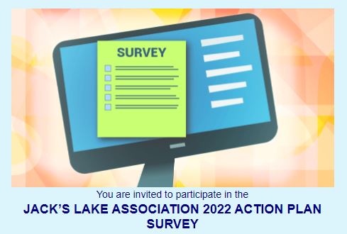 Jack’s Lake Association 2022 Action Plan SurveySunday January 09, 2022 Please take just a FEW minutes to complete this quick survey and help establish JLA priorities for 2022. Tell us what is important to you! *survey will close February 15, 2022* Click here for surveyBack
